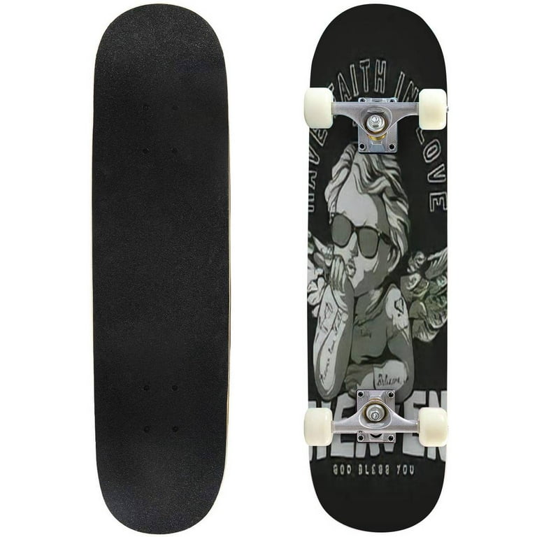 Heaven Slogan With Tattooed Angel Statue In Sunglasses Illustration On Outdoor Skateboard Longboards 31 X8 Pro Complete Skate Board Cruiser Walmart Com